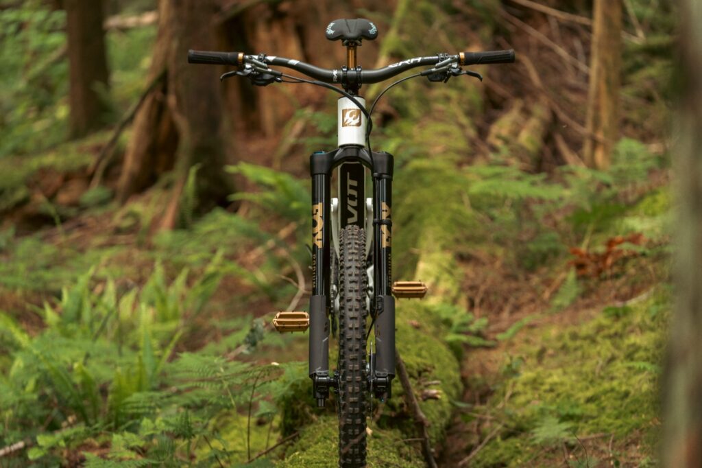 O design invertido também encurta a distância entre a bucha inferior da suspensão e o eixo à medida que a suspensão se comprime. Isso reduz a alavanca sobre a bucha, minimizando o atrito exatamente quando os ciclistas mais precisam — em trechos técnicos com curso profundo.