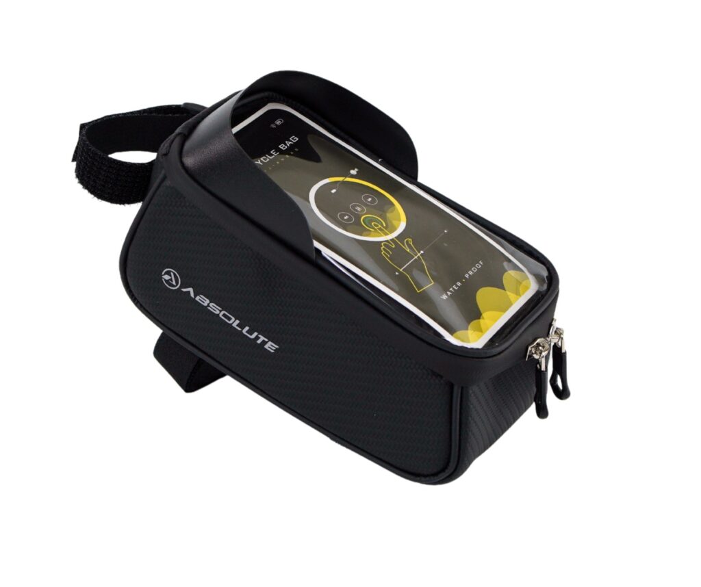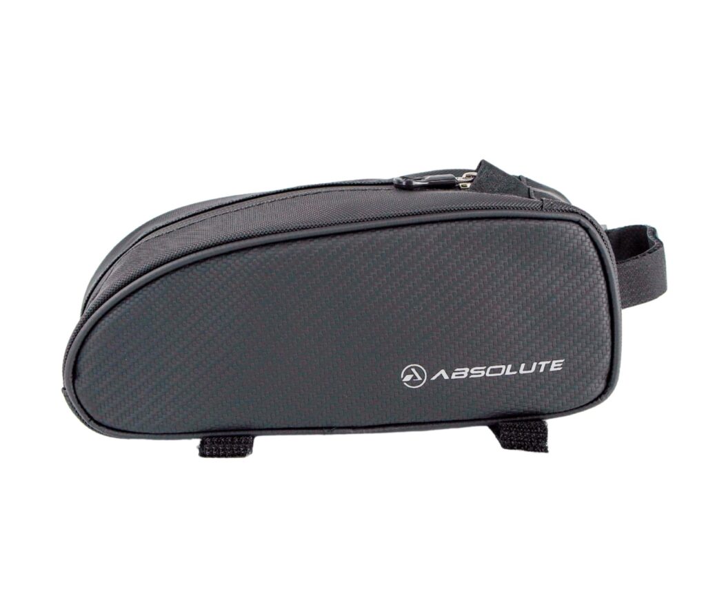 Outro modelo que também é fixado no tubo superior, junto ao tubo de direção, é a bolsa de quadro Absolute Top Bag 2. Versão mais compacta, facilita a vida do ciclista deixando tudo bem à mão, acomoda igualmente celulares de até 6,7”, com capacidade volumétrica de 1,5 litro e medidas de 20×10×9 cm.