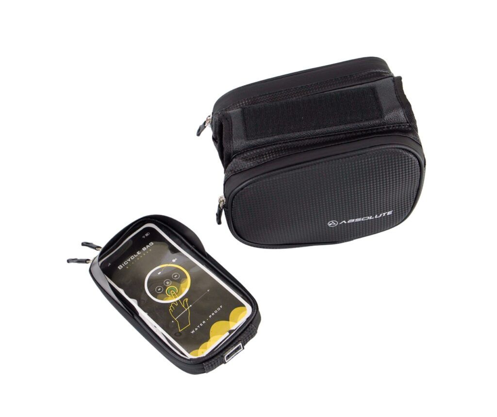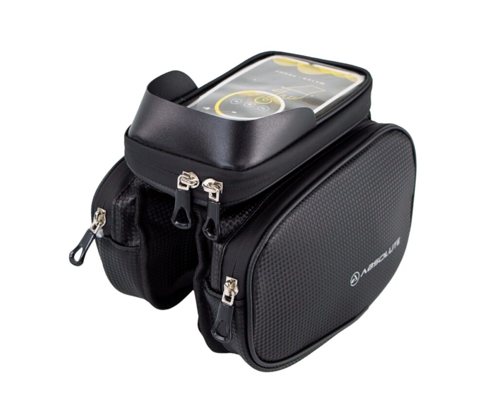 Certamente, um dos destaques da nova linha é a Bolsa de Quadro Absolute Tipo Alforje, que conta com dois compartimentos laterais “pendurados” ao lado do tubo superior da bicicleta e um compartimento superior especialmente projetado para transportar o telefone celular. O modelo ainda possui um painel transparente sensível ao toque, tornando muito mais simples a visualização de mapas e inclusive a utilização de touch screen durante as pausas do pedal.